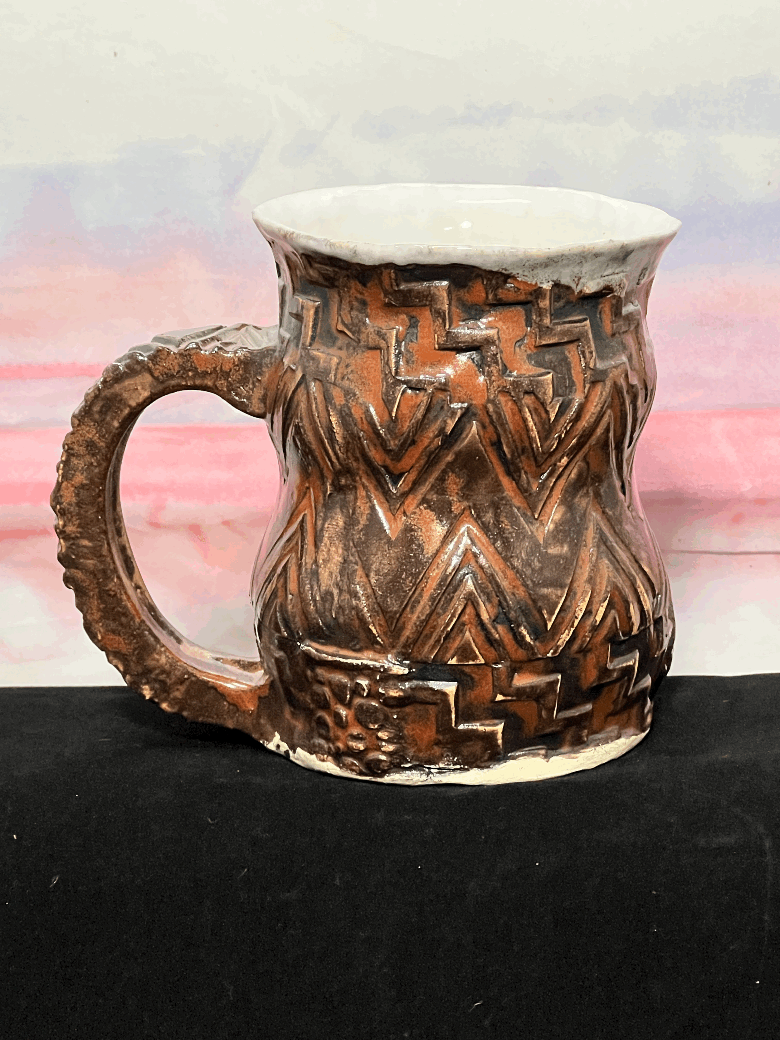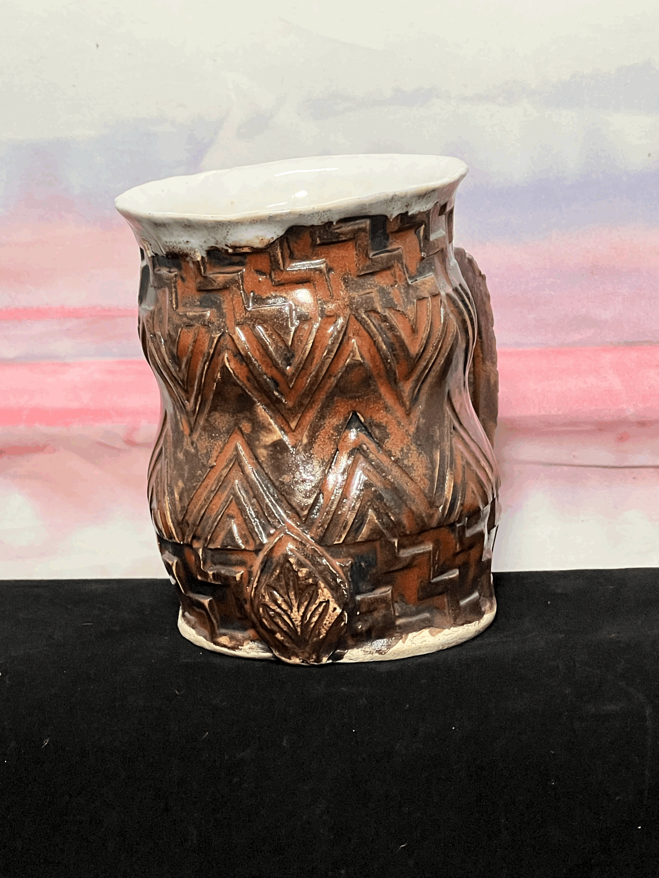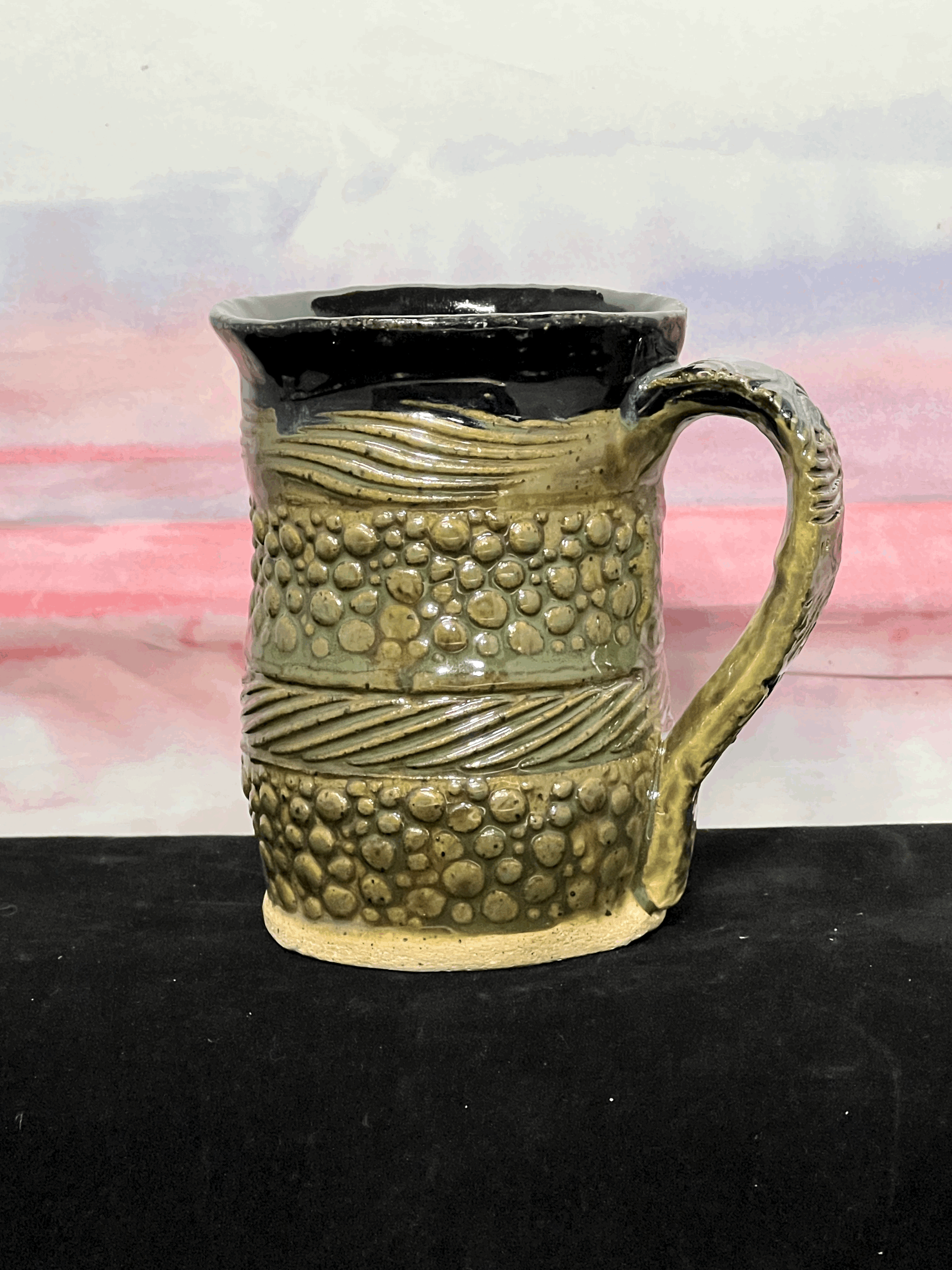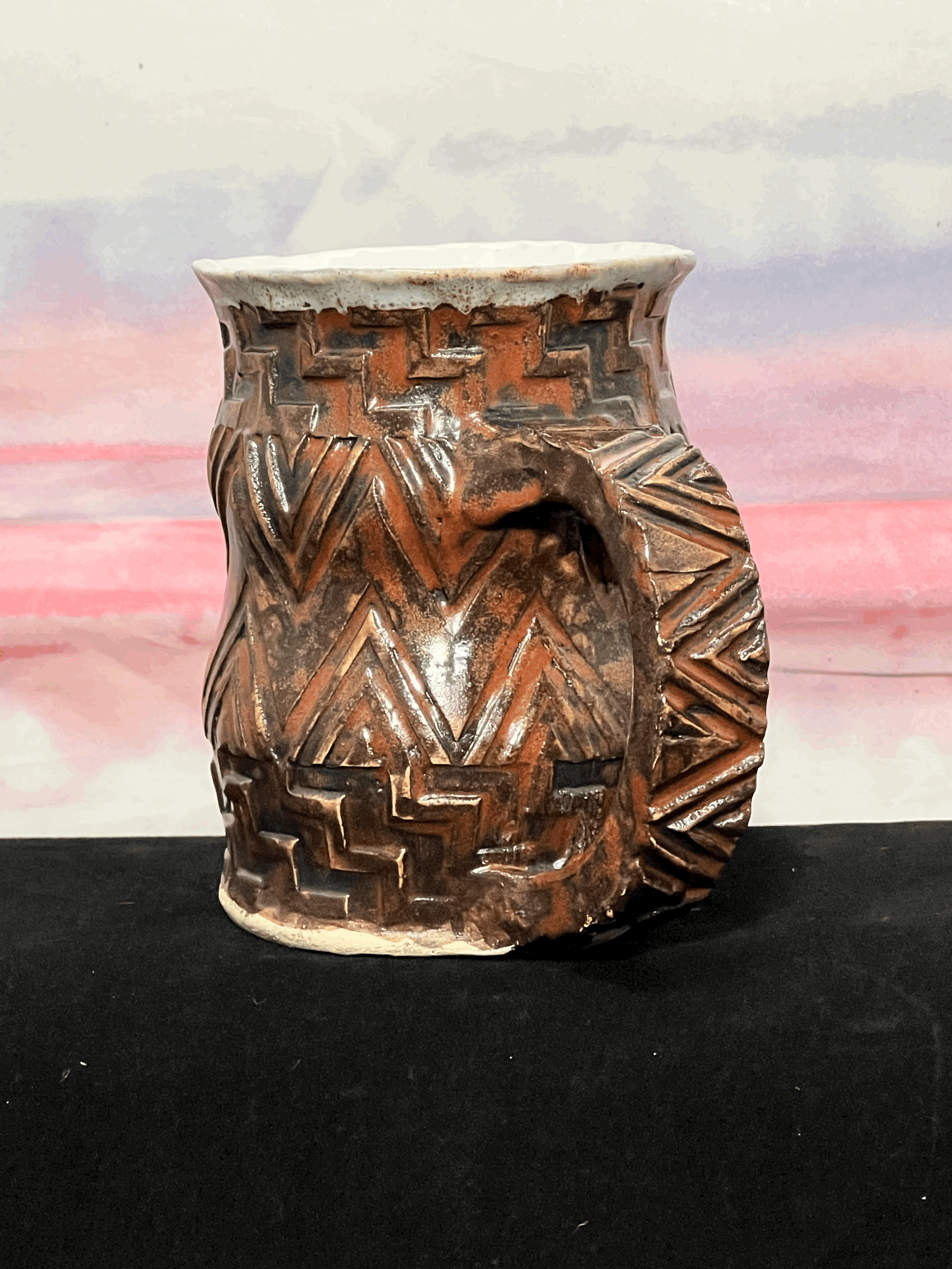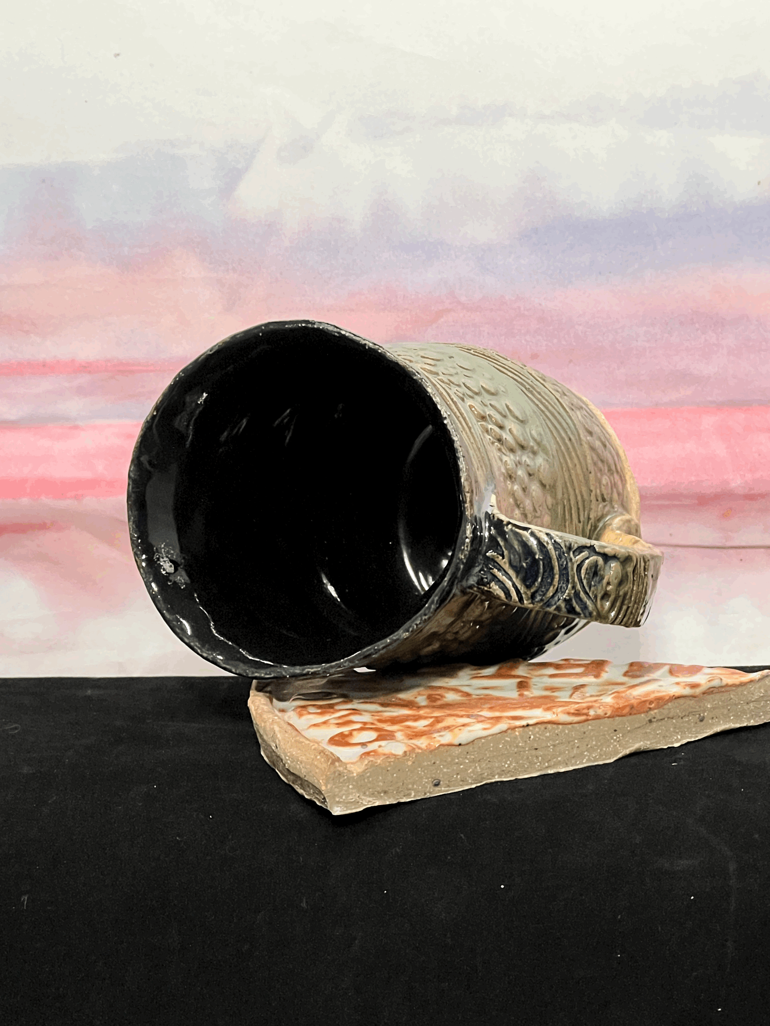 Slab built ceramic mug. All of our One of a Kind mugs are Microwave and Dishwasher Safe